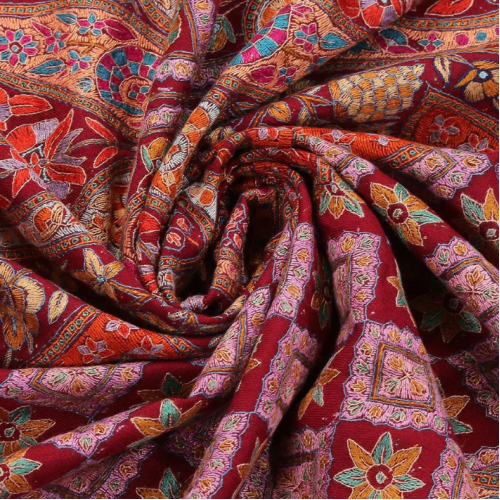 Adorned with delicate Resham threads, the shawl features intricate embroidery that enhances its beauty. Each thread is meticulously placed to create timeless patterns that captivate the eye.