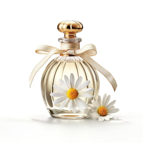 A fresh and floral scent reminiscent of a blooming garden, presented in a crystal-clear bottle with a blooming flower-shaped stopper.