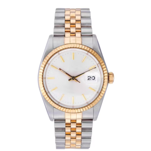Our designer watch seamlessly blends golden and silver tones, creating a visual masterpiece that harmonizes elegance with versatility. The combination of these timeless metallic hues ensures that this watch is not just an accessory but an expression of refined taste.
